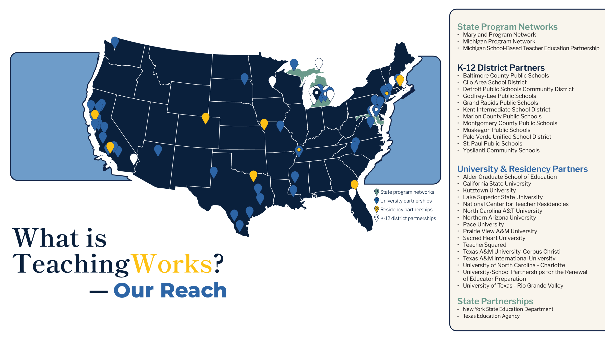 TeachingWorks creates programs and workshops that intertwine a deliberate focus on teaching practice, academic subject matter, and equity for new and practicing teachers.
